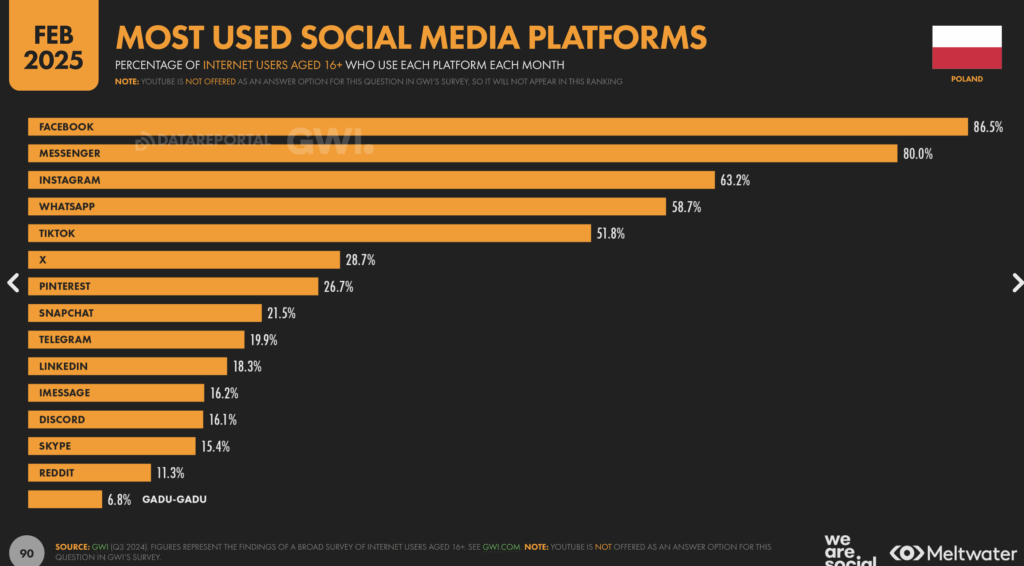 I choć słychać głosy, że Facebook jest już niemodny, że coraz mniej ludzi z niego korzysta, to liczby temu przeczą. Według badania Digital in Poland – największego na świecie badania zachowań internautów w kilkudziesięciu krajach świata – ponad 86% użytkowników internetu w Polsce korzysta z Facebooka. Jakby te procenty przełożyć na liczby bezwzględne, to wyjdzie nam spokojnie ponad 20 milionów osób.