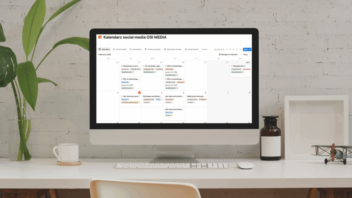 Bo większość małych firm ma dokładnie ten sam scenariusz. Jak przychodzi koniec roku albo kwartału, to mają postanowienia: Od przyszłego miesiąca zaczynam publikować regularnie. Otwierasz Excel. Tworzysz kolumny: Data, Temat, Platforma, Format, Hashtagi, CTA, Status, Osoba odpowiedzialna. 90 wierszy do przodu. Trzy godziny później arkusz gotowy. Wygląda profesjonalnie. Wygląda jak strategia dużej agencji.